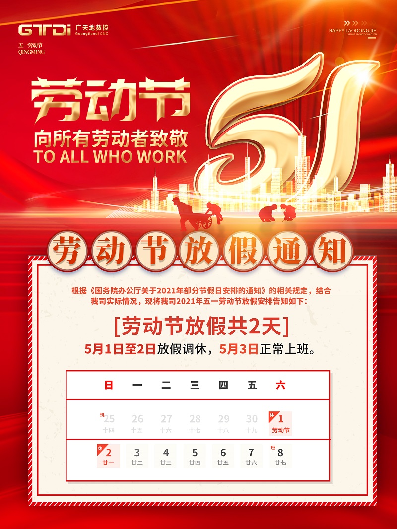 金沙城js93线路数控2021年五一劳动节放假通知